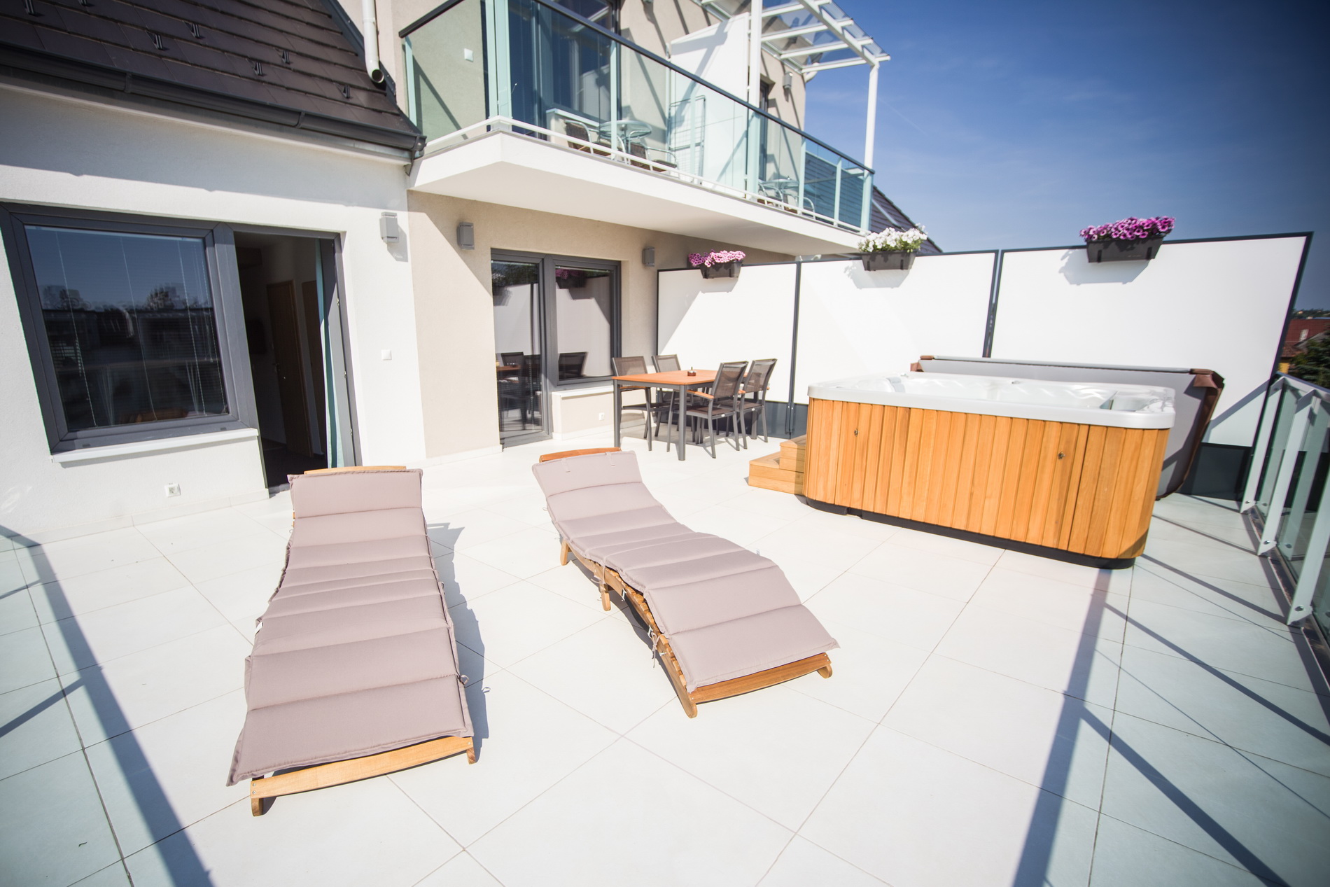 A ház megjelenésével, szolgáltatásaival nem a klasszikus apartman kategóriába tartozik, a szobák nagy méretére való tekintettel azonban a standard szállodai kategóriába sem sorolható